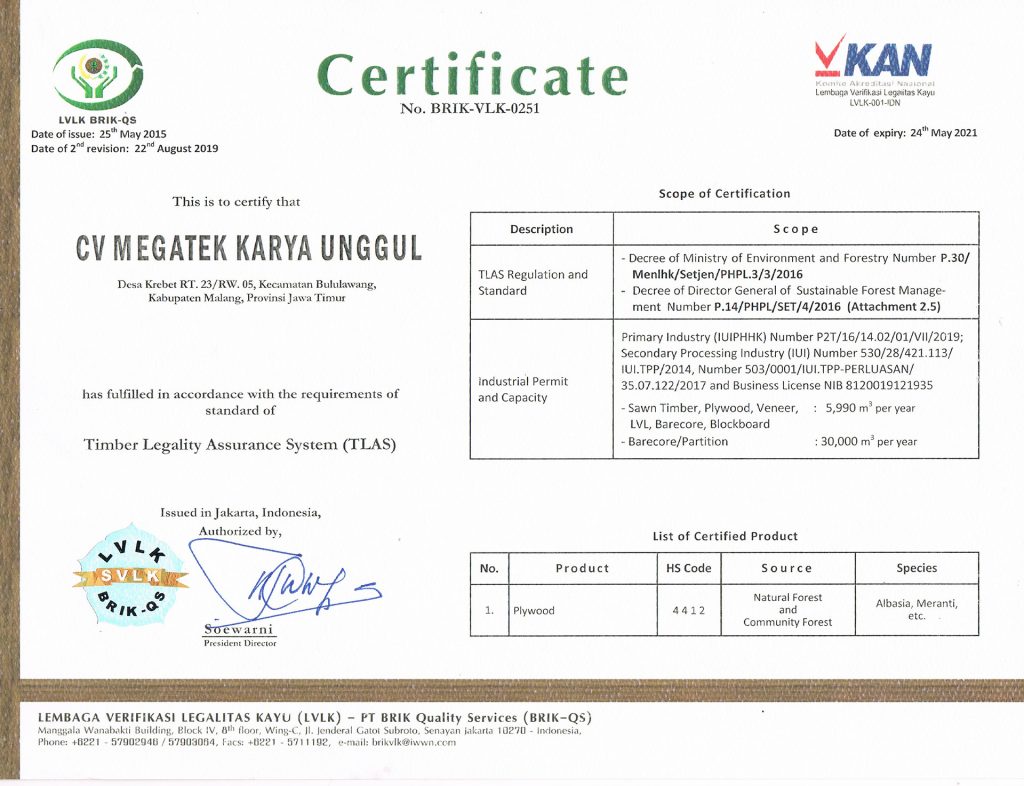 We are wood processing company that was established in February 2015. Our company focuses on selecting good quality raw materials and also recruiting and training around 210 employees and experts to produce the best products. Our company pays attention to the “green environment” and professional handling in each section. Due to the high market demand, since 2019, we are focusing on producing Plywood in various sizes. Our products regularly export to Asia (Singapore, Thailand, Malaysia, Japan) and Middle East (Saudi Arabia, Kuwait, Iraq, Jordania)